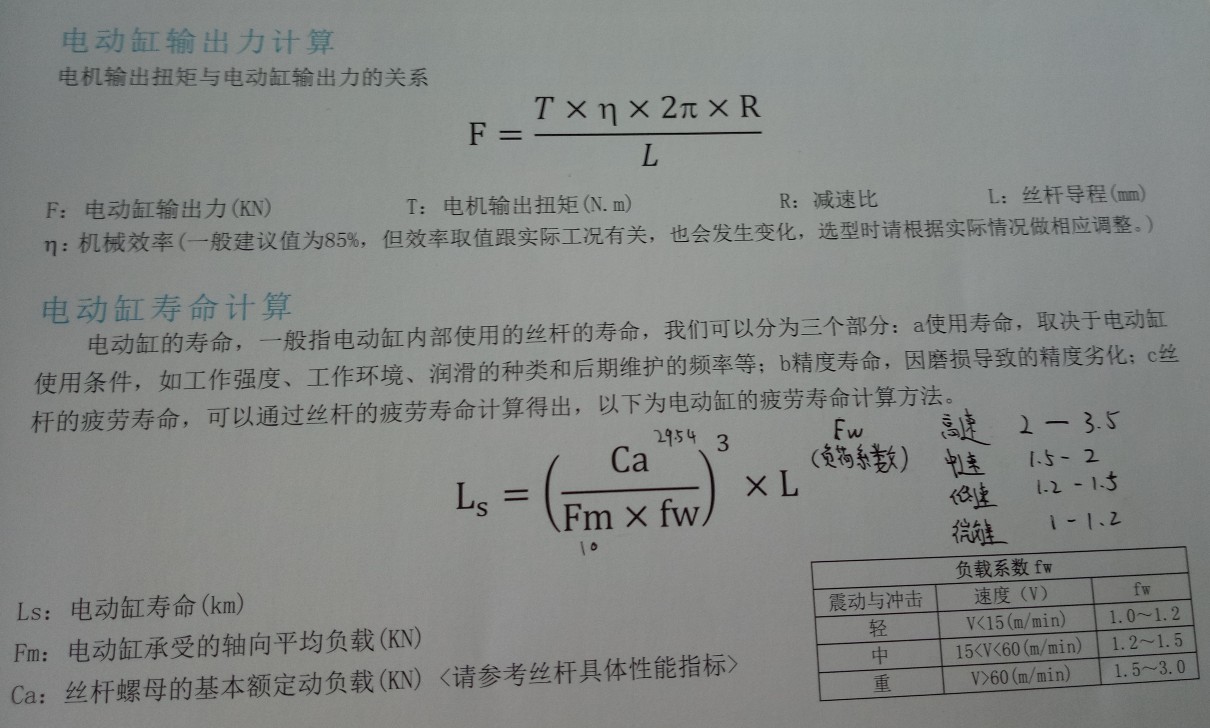 伺服電動缸使用壽命計算方式以及輸出力計算公式